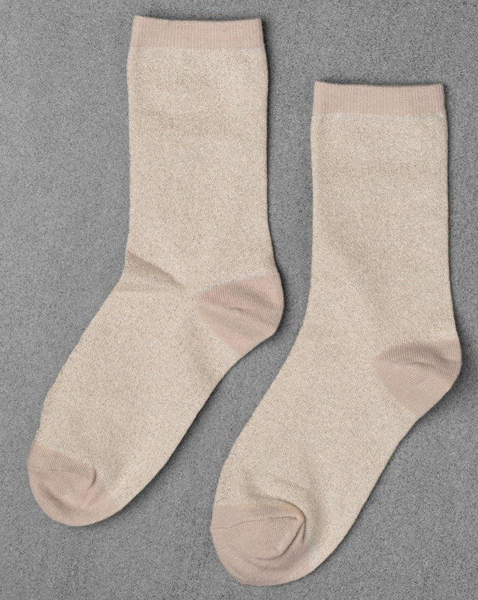 A hint of lustre, a lot of style — our Glitter Socks bring a bit of sparkle to the everyday. Knit in soft, smooth yarns, they’re designed to be pulled up sleek under a bootie, or scrunched down for a relaxed vibe. Worn with sneakers or heels alike, they lend a touch of the unexpected. Available in soft feminine hues and versatile neutrals, they’re an easy way to add a little shine to any outfit — party or not.