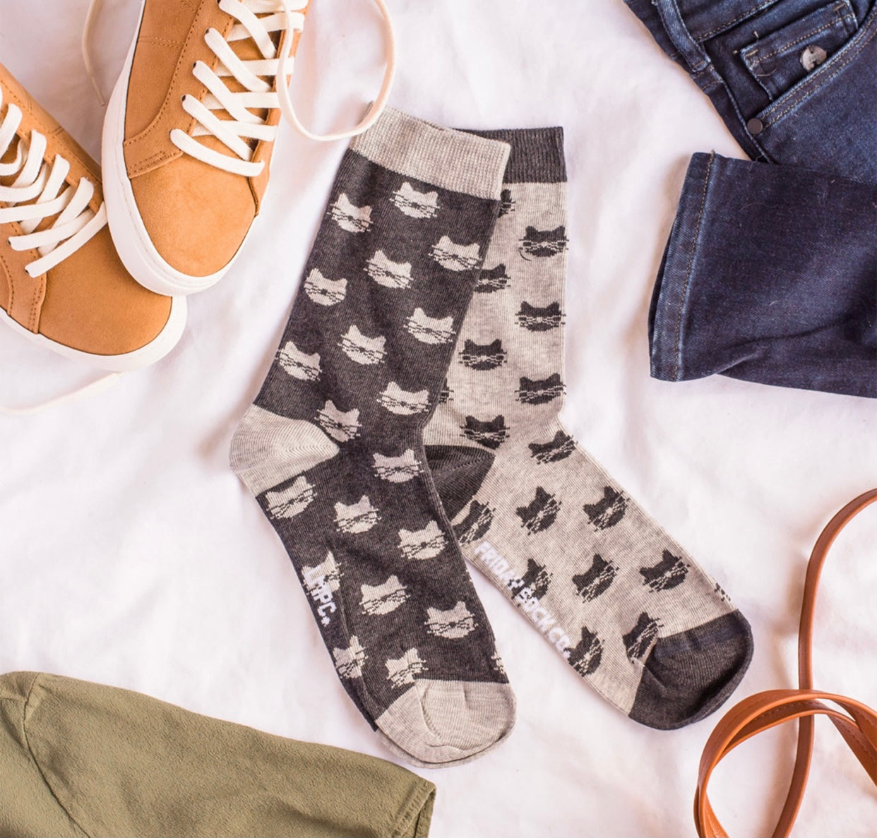 Are you a cat fanatic? Or know someone who is? Women's Inverted Grey Cat Mismatched Socks are a cat lover's dream.