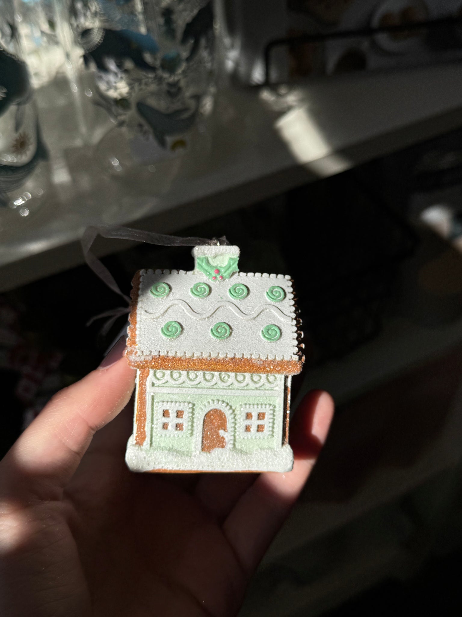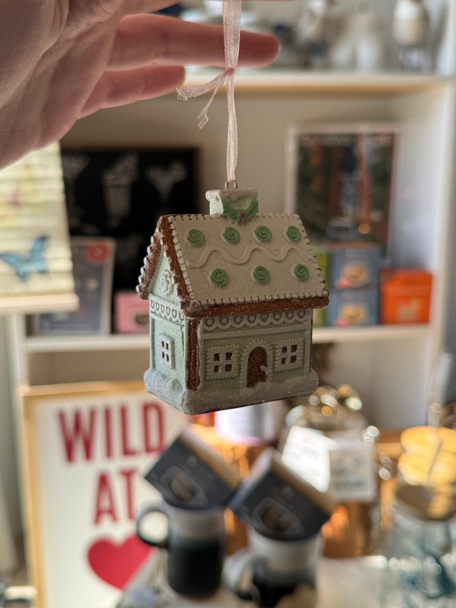 Featuring cute pastel colors and a touch of shimmer, each of these gingerbread house ornaments bring a delightful, festive vibe that’s perfect for brightening your tree or mantel.