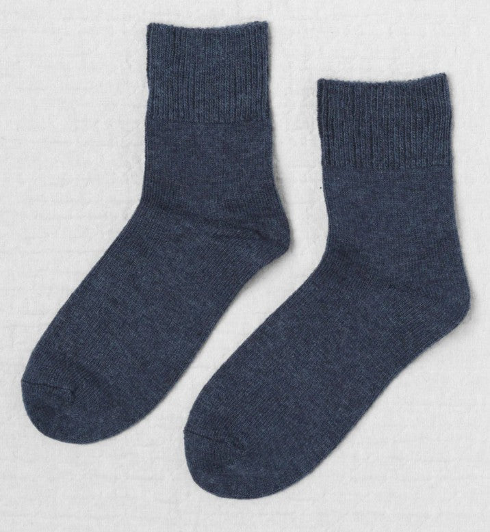 Warm smooth knit in a short crew length with a wide ribbed cuff that is loose and comfortable. Perfect length for ankle boots.