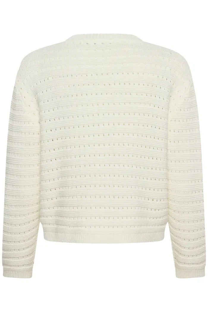 This textured knit sweater features a V neckline, long sleeves, and a fit that gently follows the silhouette. The subtle openwork pattern adds depth and visual interest, bringing an effortless yet refined touch to your knitwear wardrobe. Perfect for layering or wearing on its own, it transitions seamlessly from day to evening.