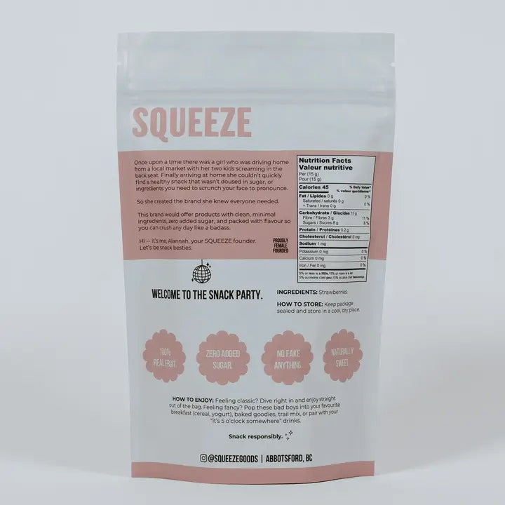 Key features: • 100% natural freeze-dried fruit • Ingredients: strawberries (that's all!) • Zero added sugar: naturally sweet • No artificial ingredients or dyes: no fake anything • Vegan and Gluten-Free