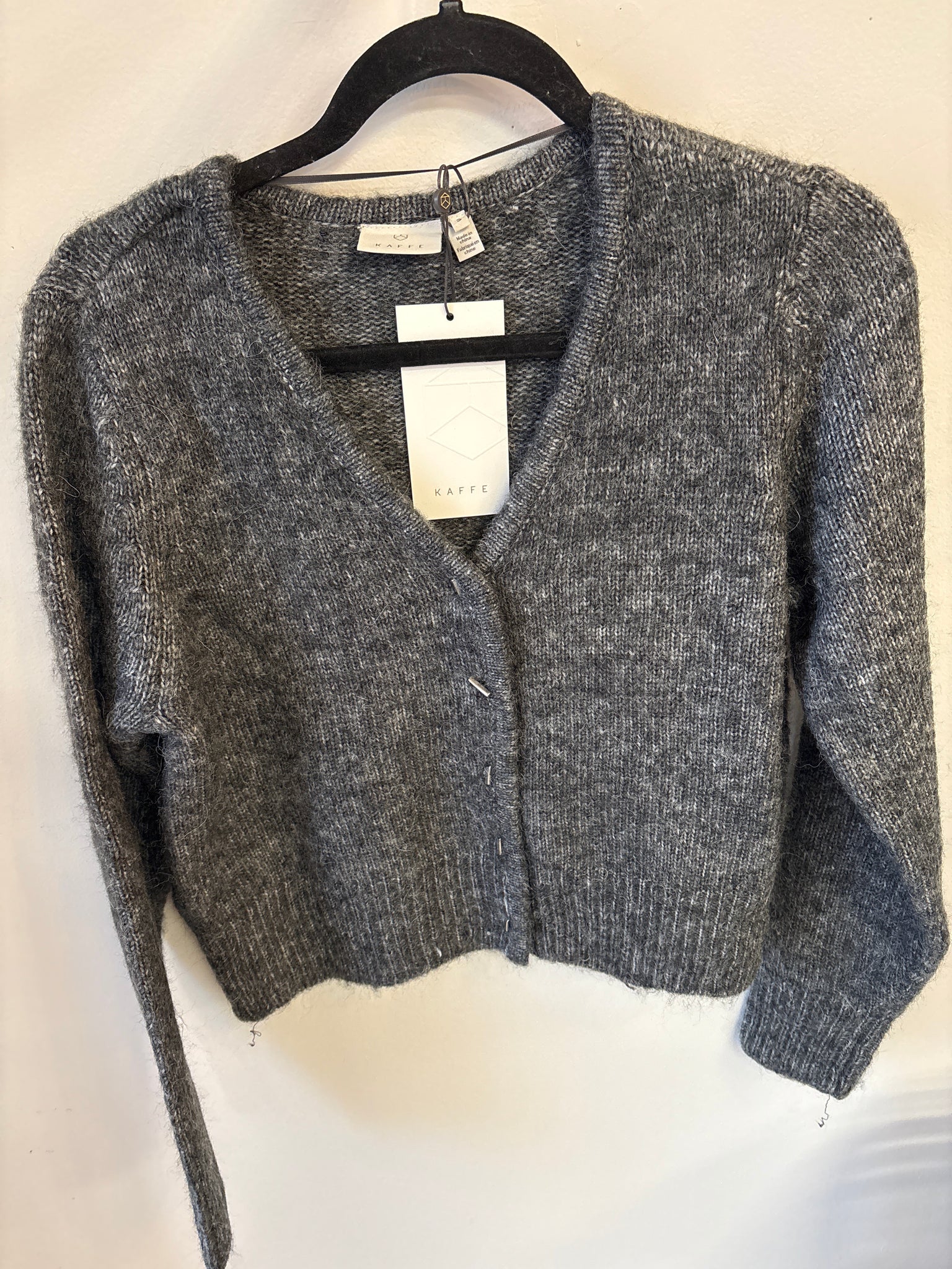 Effortlessly elevate your everyday wardrobe with the Kaffe KAmelania Cardigan in Dark Grey Melange. This relaxed fit layer features a flattering deep V-neckline and cropped sleeves. The soft, muted melange tone pairs seamlessly with virtually everything in your closet, making it the versatile piece you'll reach for season after season. Perfect for layering on cooler days or wearing solo when the weather warms up.